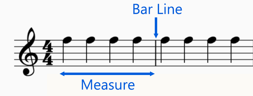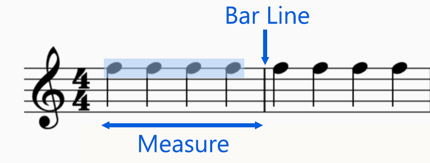 In music, a measure (or bar) is a small segment of notes and rests. Measures in a piece of music have equal length, assuming that tempo remains the same.