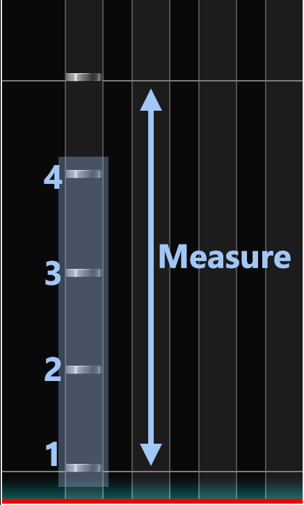 Here, we see that there are four notes in a measure in the beginning of Quasar SPH, each making a strong drum sound. As these notes evenly divide the measure into quarters, we call them quarter notes (1/4).