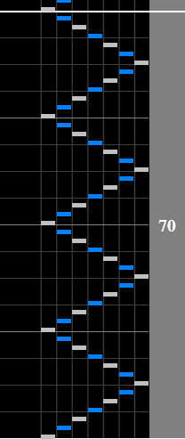 GRID KNIGHT operates on this rhythm of 12 notes per measure, which makes this a 12/8 time signature (each measure has twelve 1/8 notes). You don’t need to understand time signatures right away; you just need to understand that this is not a 4/4 time signature, and therefore sounds and plays differently; watching the video probably already gave you that feeling.