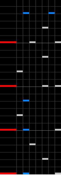 You can see that notes in the second lane lines up with the 16 sections, making them sixteenth notes. However, the other lanes are slightly off - it’s because they are 24th notes (there are some pauses in between - they are 24th rests!).